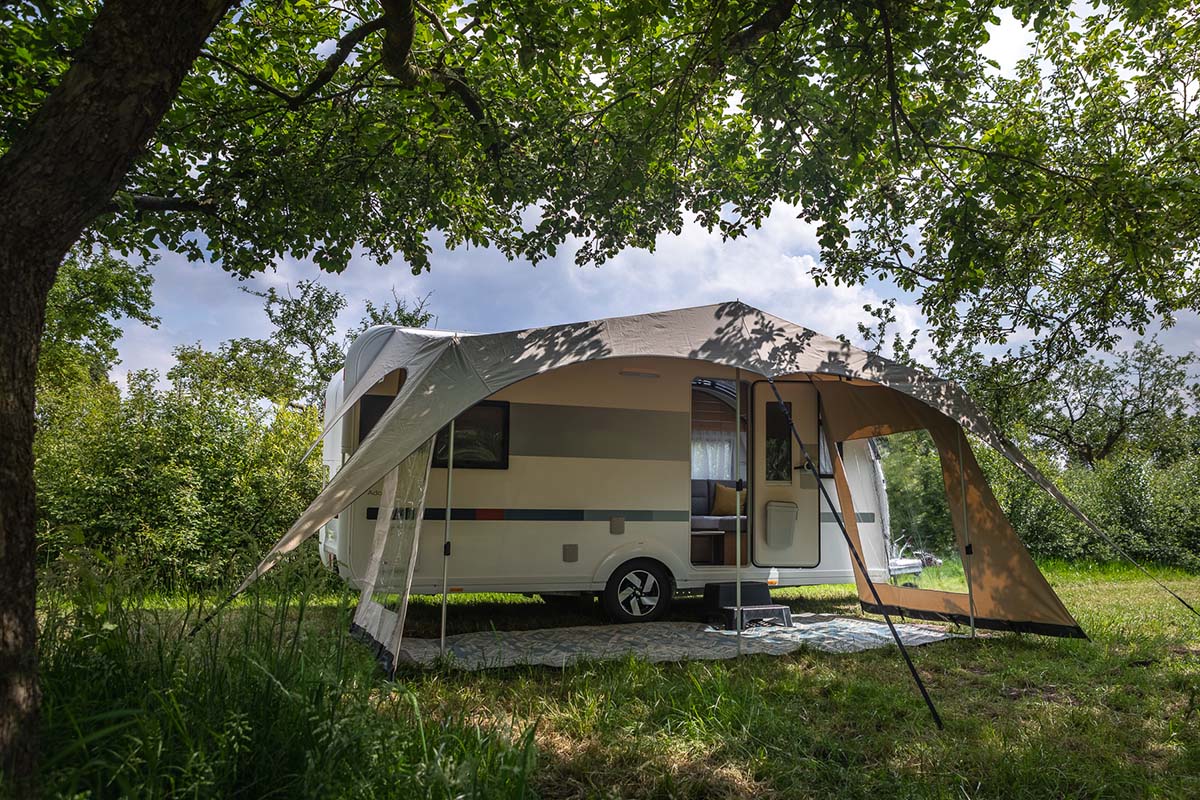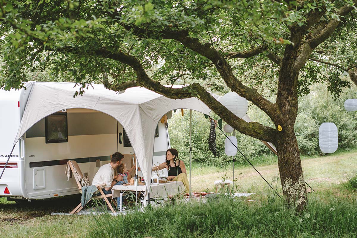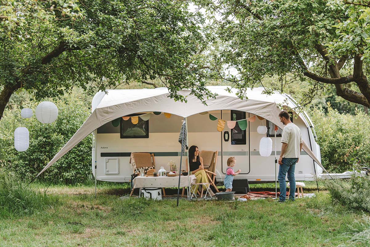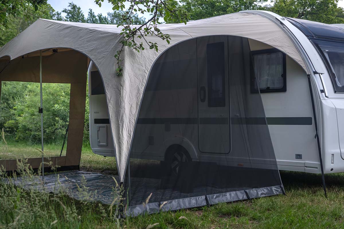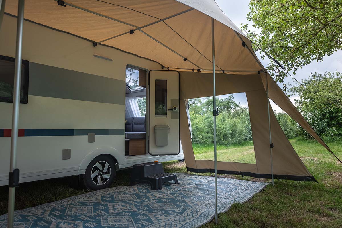 TIP. Je kunt ook een kleinere maat kiezen, dan wordt de Trekking een deelluifel. Je gebruikt hierbij het Triple-Lane systeem en spant één of beide kanten naar buiten af. Het is handig om hierbij rekening te houden met de positie van de deur en ramen in jouw caravan.